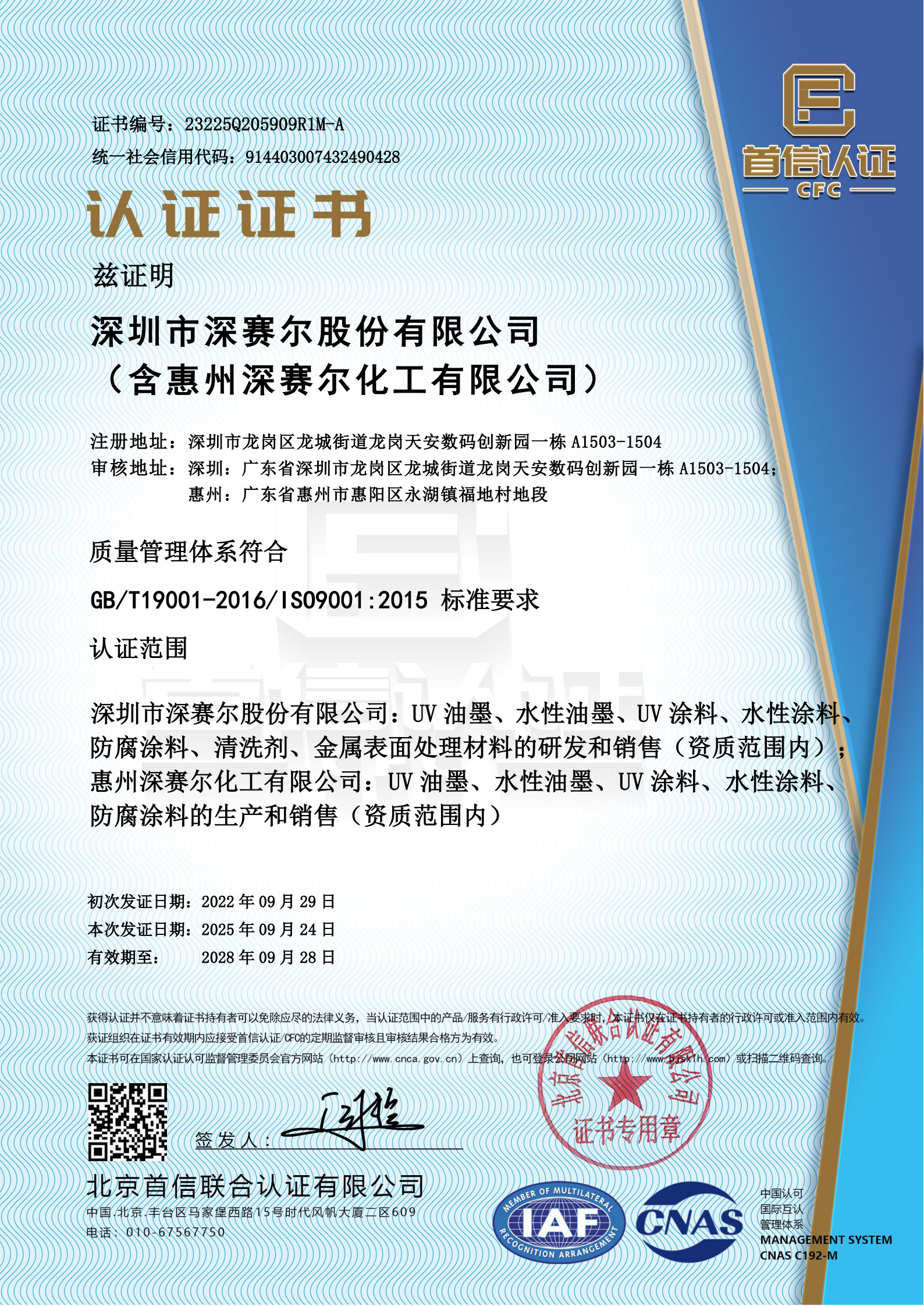 ISO 9001質(zhì)量管理體系認(rèn)證證書