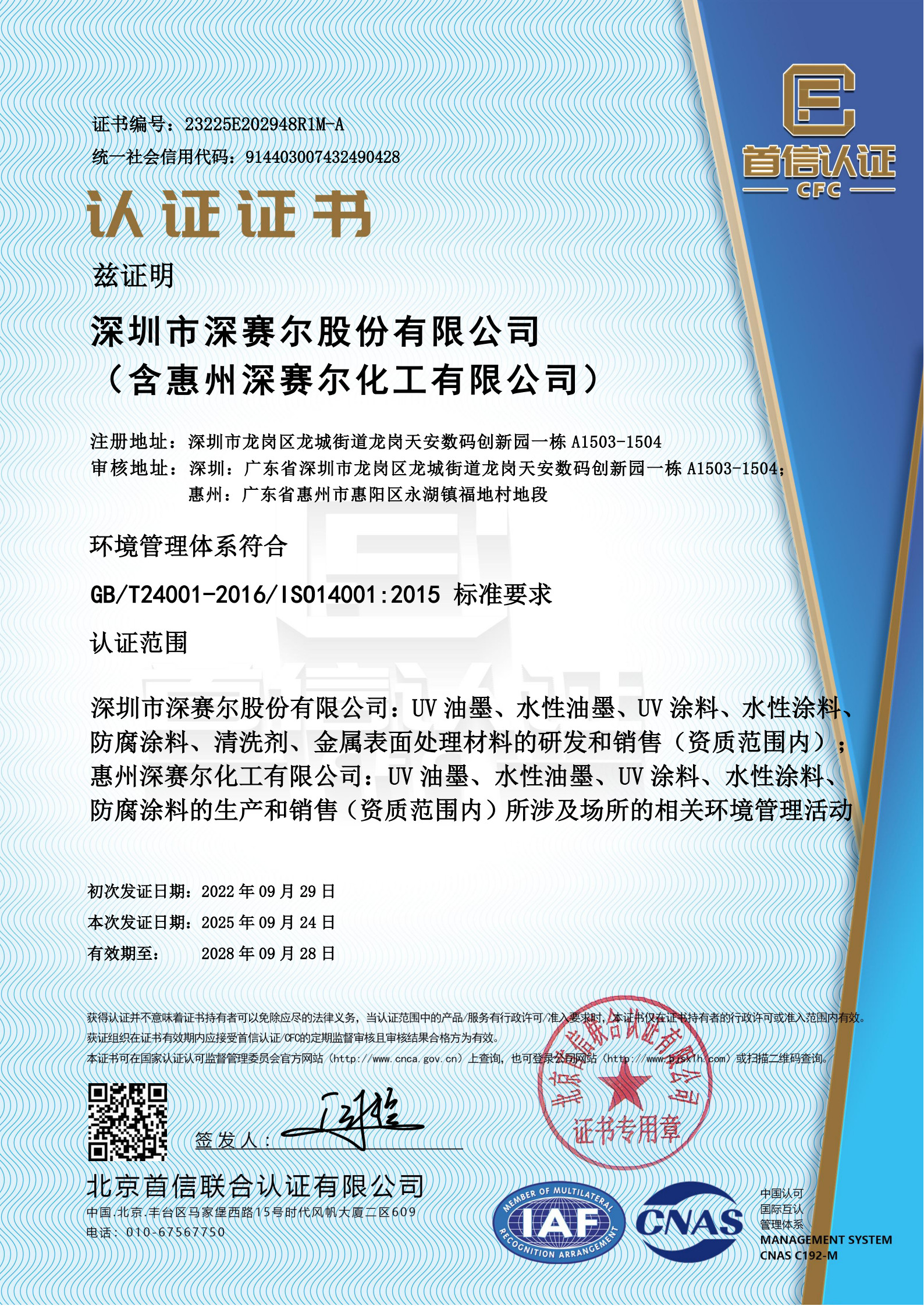 ISO 14001環(huán)境管理體系認(rèn)證證書
