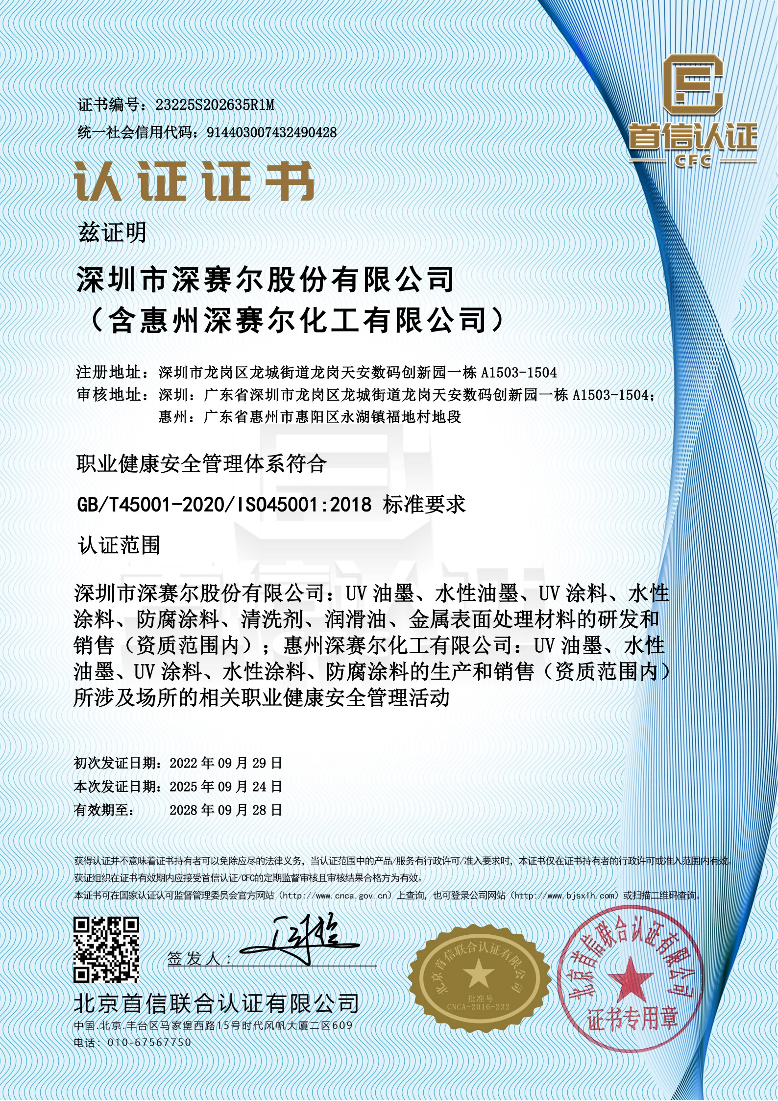 ISO 45001職業(yè)健康安全管理體系認(rèn)證證書