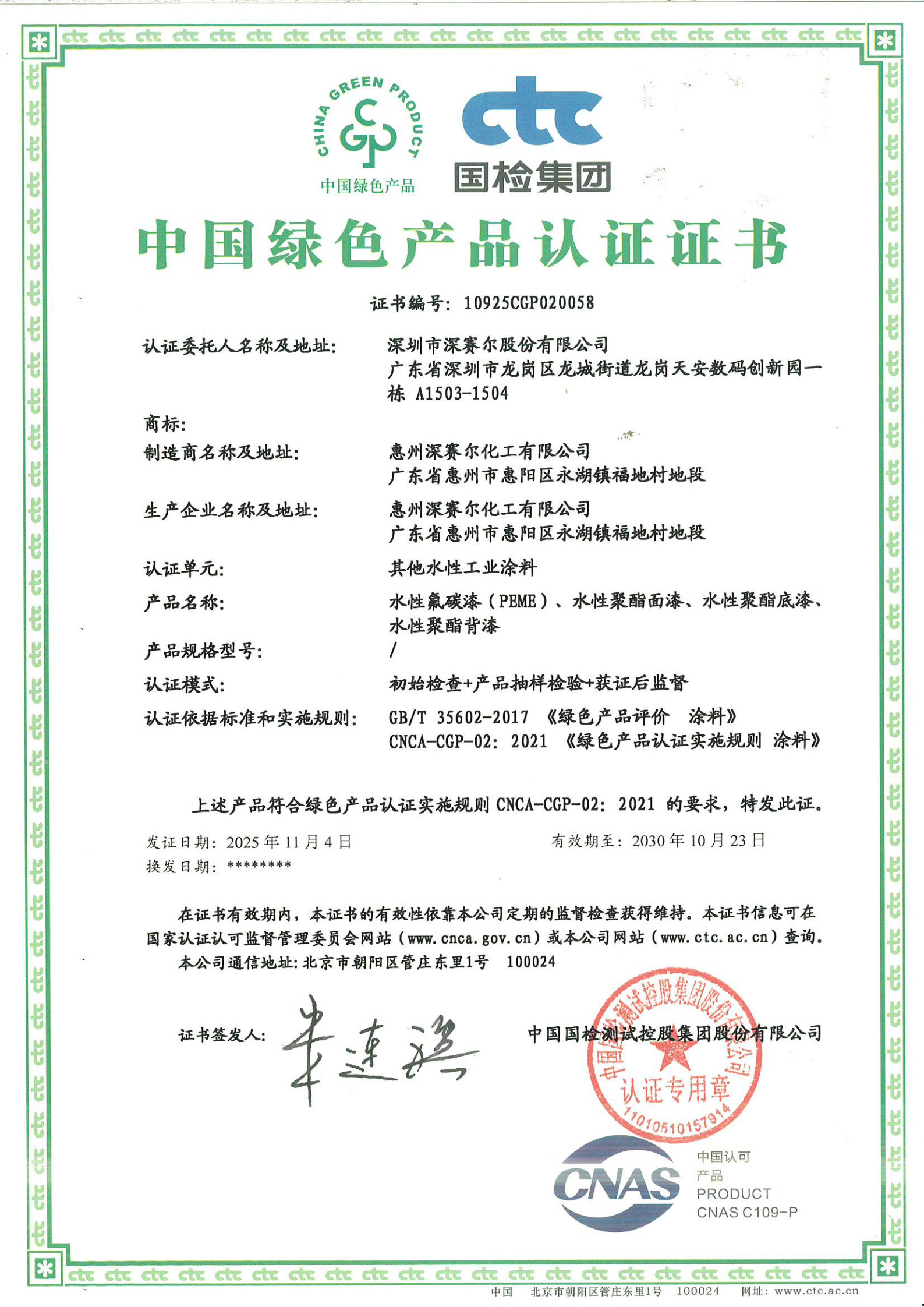 中國(guó)綠色產(chǎn)品認(rèn)證證書