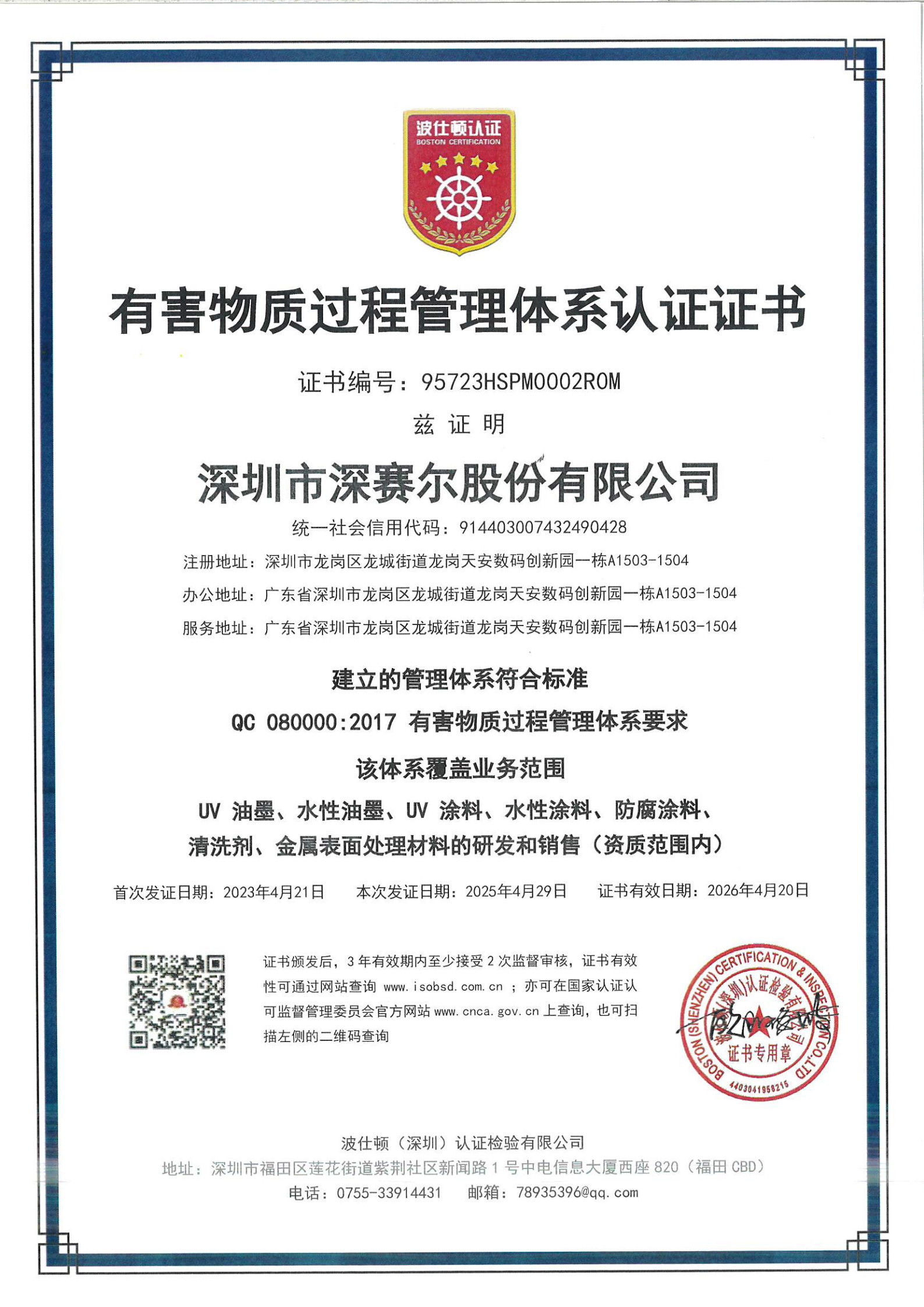 有害物質(zhì)過(guò)程管理體系認(rèn)證證書
